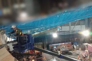 こんにちは〜✋ 本日のお写真は 某現場の飛散防止ネット設置の写真です! 寒さに