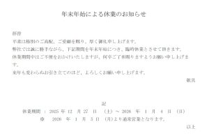 誠に勝手ながら、下記期間は年末年始休暇とさせていただきます!