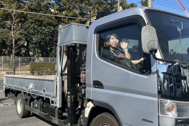 こんにちは! 本日のお写真は弊社のユニックです こちら、事務員が運転しております 女性